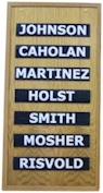 SMALL DISPLAY PANELS The Small Display Panels accommodate nameplates ¾" X 4 ½" and have 1" diameter LED arrays. These panels are suitable for viewing distance of up to 25 feet. Panels are 10" wide, 1 1/4" thick. Heights are, for 5 members -14", 7 members – 16". 9 members – 18", 11 members – 19", 13 members – 19" and for 15 members 21 1/2'". These Panels are frequently used in situations where it is difficult for the voting members to view the primary Display Panels. SET OF INDIVIDUAL VOTE DISPLAY PANELS These Individual Panels - one for each member - are 4" high by 24" wide by 1 1/4" thick with 2" by 12" name plates. They are intended for placement in front of each individual voting member. CUSTOM DISPLAY PANELS can be price quoted for any situation or design concept, special décor or extra long viewing distances.